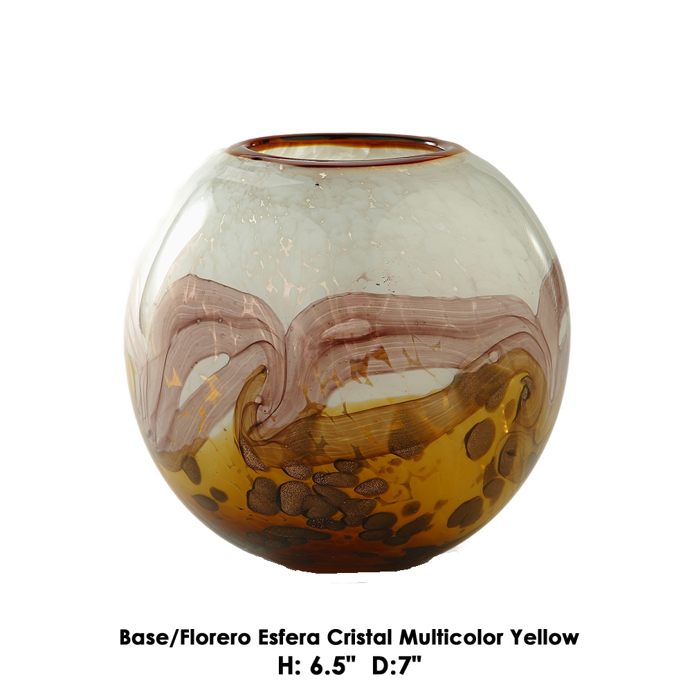 Base/Florero Esfera Cristal Multicolor Yellow - H: 6.5"  D:7" Base/Florero Esfera Cristal Multicolor Yellow - H: 6.5"  D:7"