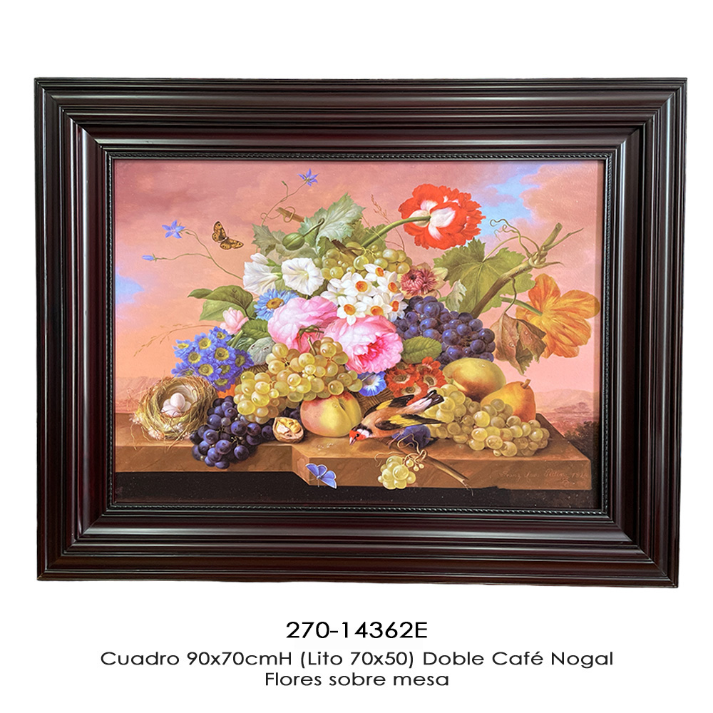 C. 90x70cmH (Lito 70x50) Doble Café Nogal - Flores sobre mesa C. 90x70cmH (Lito 70x50) Doble Café Nogal - Flores sobre mesa