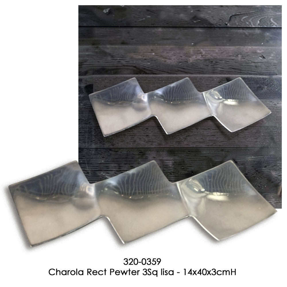 Charola Rect Pewter 3Sq lisa - 14x40x3cmH Charola Rect Pewter 3Sq lisa - 14x40x3cmH
