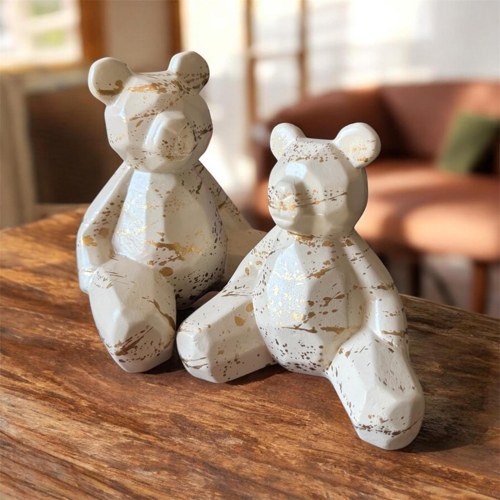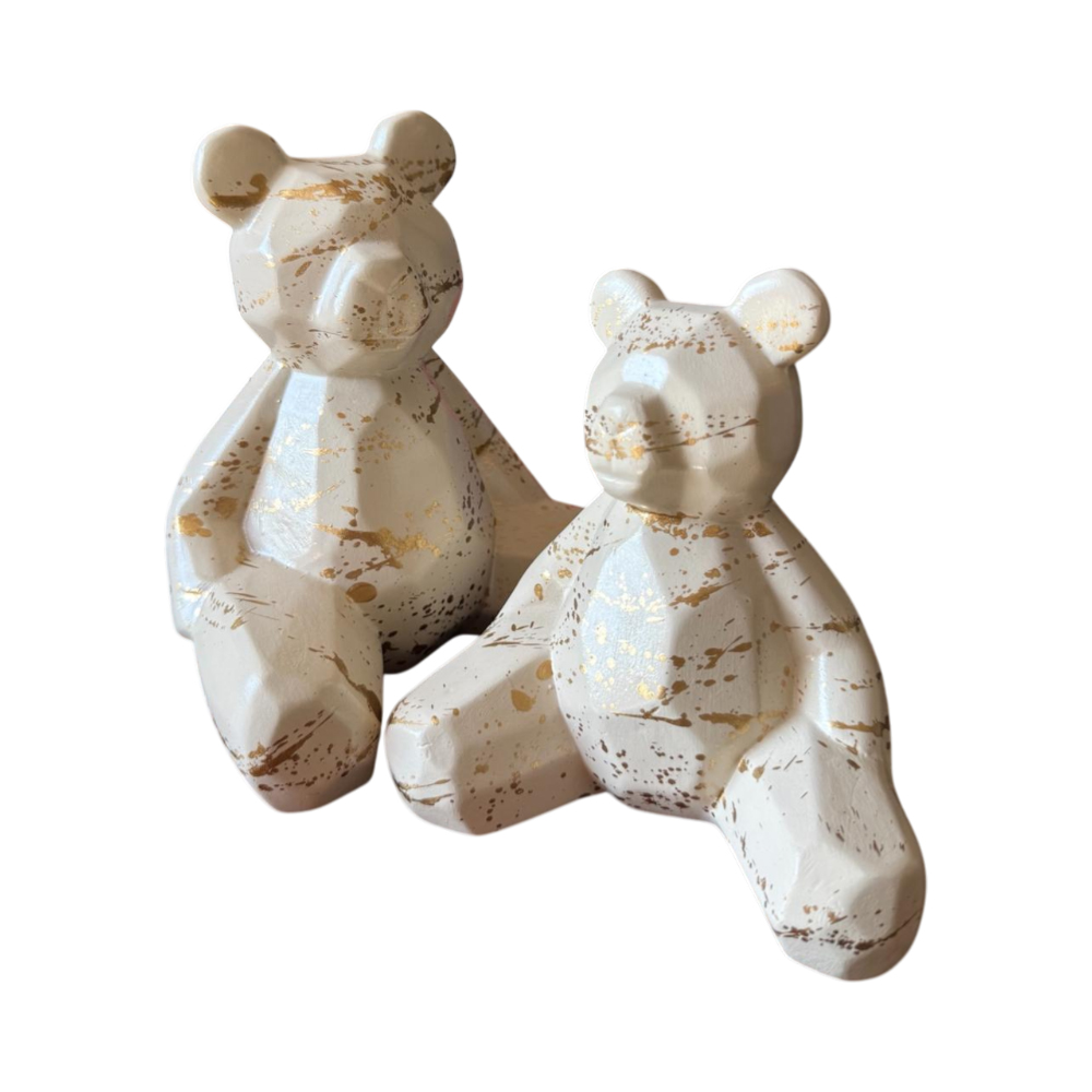 Jgo de 2 Osos sentado WHTIE/GOLD - 18/15cmH Jgo de 2 Osos sentado WHTIE/GOLD - 18/15cmH