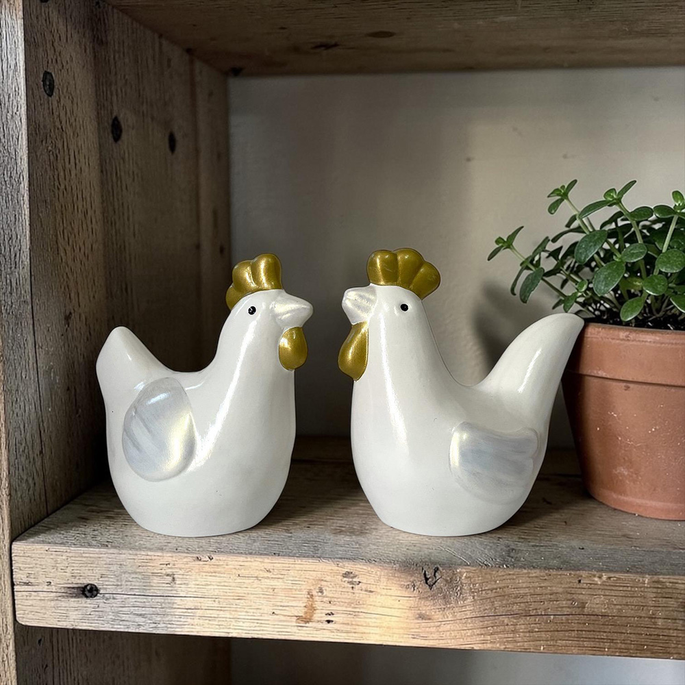 Jgo 2 Gallinas WH/GD - 18/17cmH 10cmD Jgo 2 Gallinas WH/GD - 18/17cmH 10cmD
