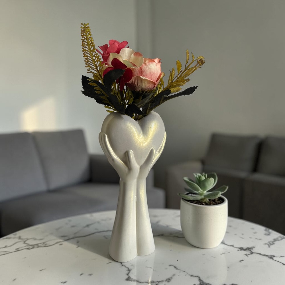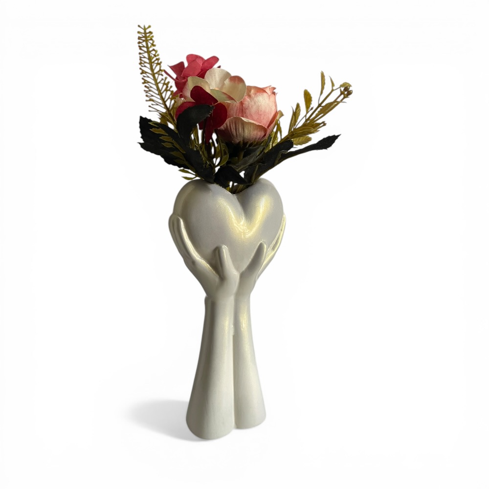 Florero Manos Corazón c/flores PEARL - 10x5x28cmH Florero Manos Corazón c/flores PEARL - 10x5x28cmH