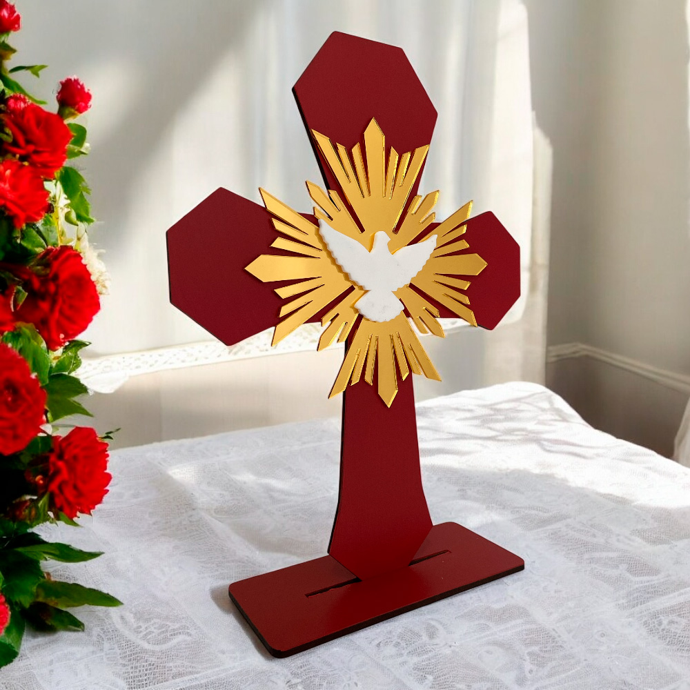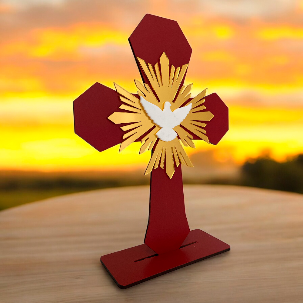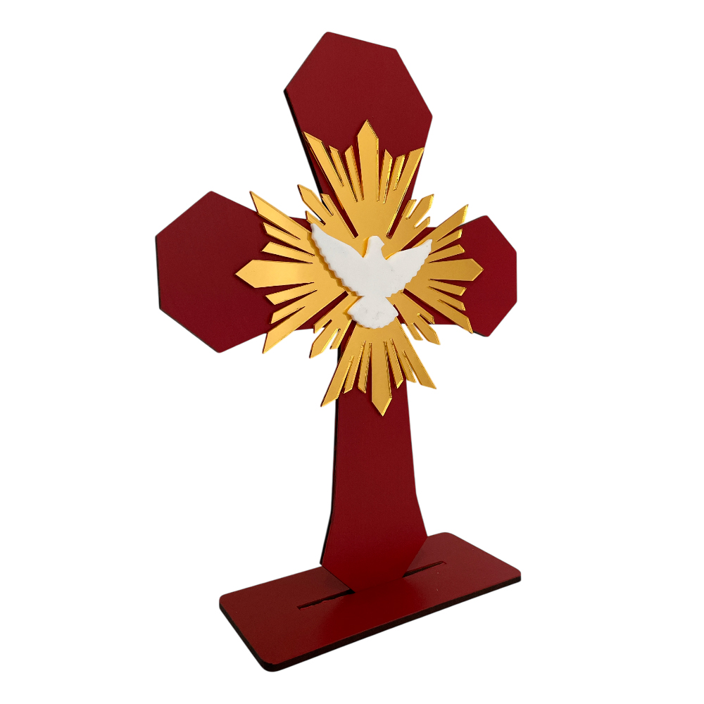 Cruz de mesa mad c/Espiritu Santo rayos acr oro - 23x7x30cmH Cruz de mesa mad c/Espiritu Santo rayos acr oro - 23x7x30cmH