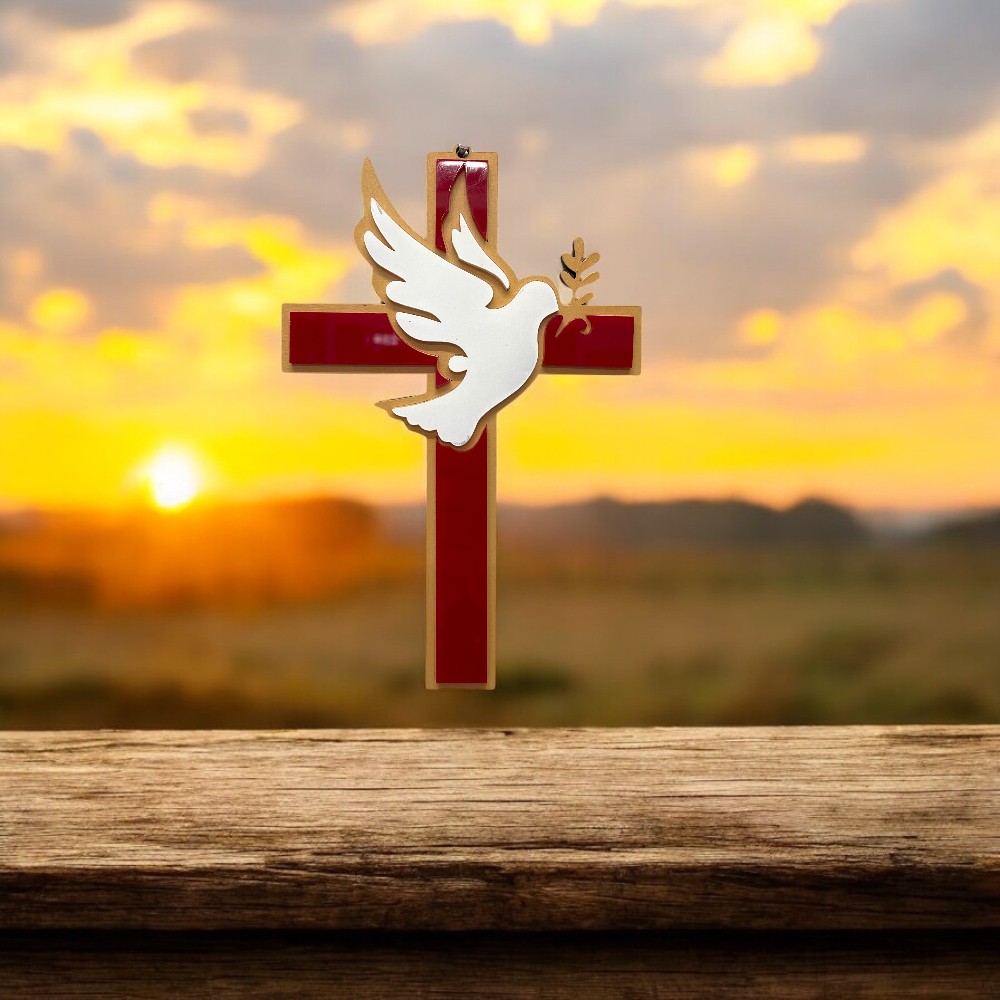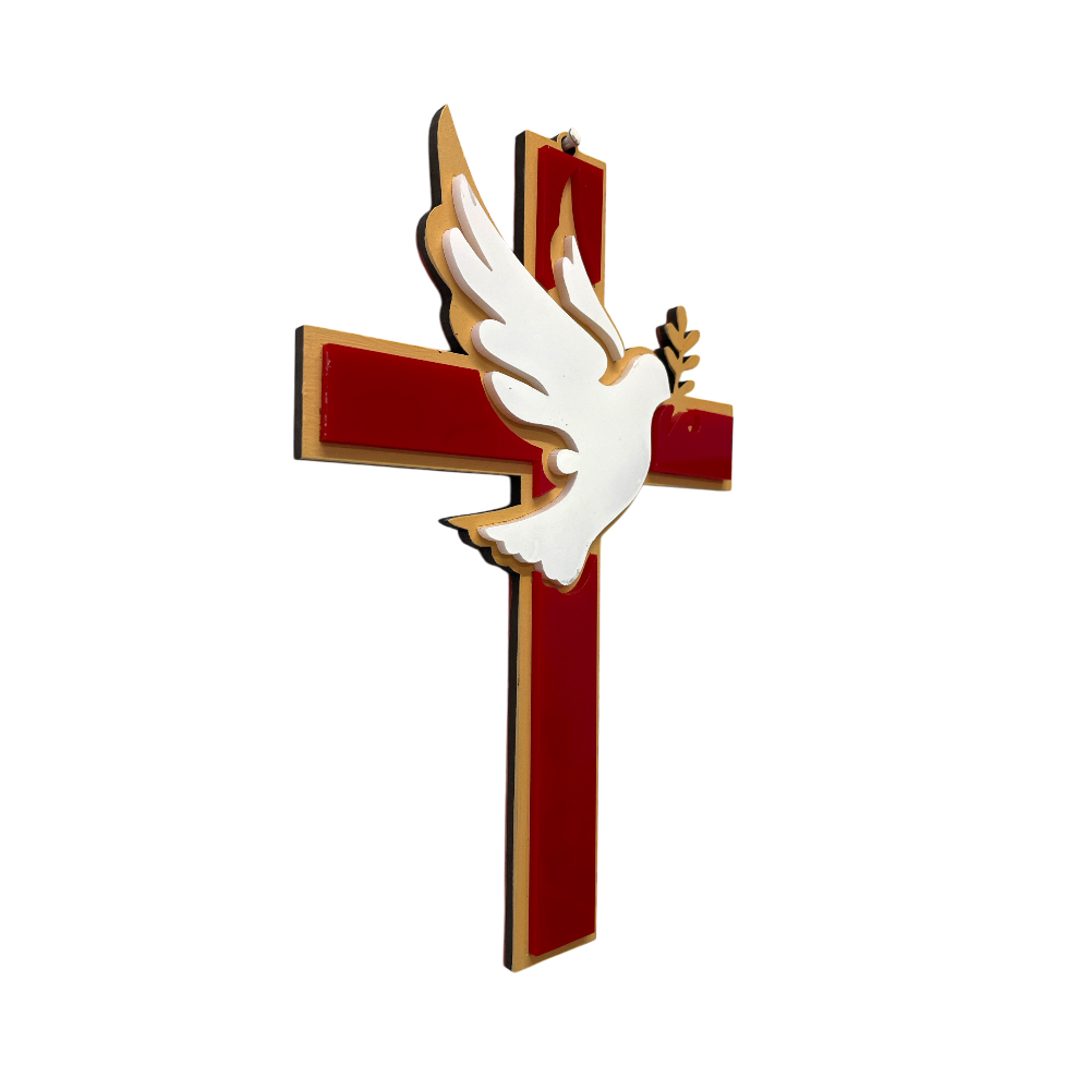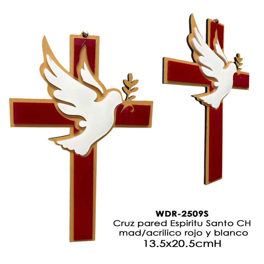 Cruz pared Espiritu Santo Ch mad/acrilico rojo y blanco - 13.5x20.5cmH Cruz pared Espiritu Santo Ch mad/acrilico rojo y blanco - 13.5x20.5cmH
