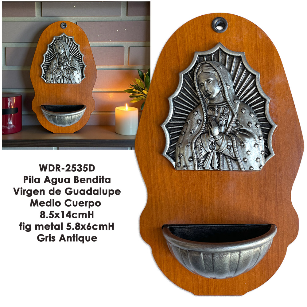 Pila Agua Bendita V. Gpe MC 8.5x14cmH fig metal 5.8x6cmH - Gris Antique Pila Agua Bendita V. Gpe MC 8.5x14cmH fig metal 5.8x6cmH - Gris Antique