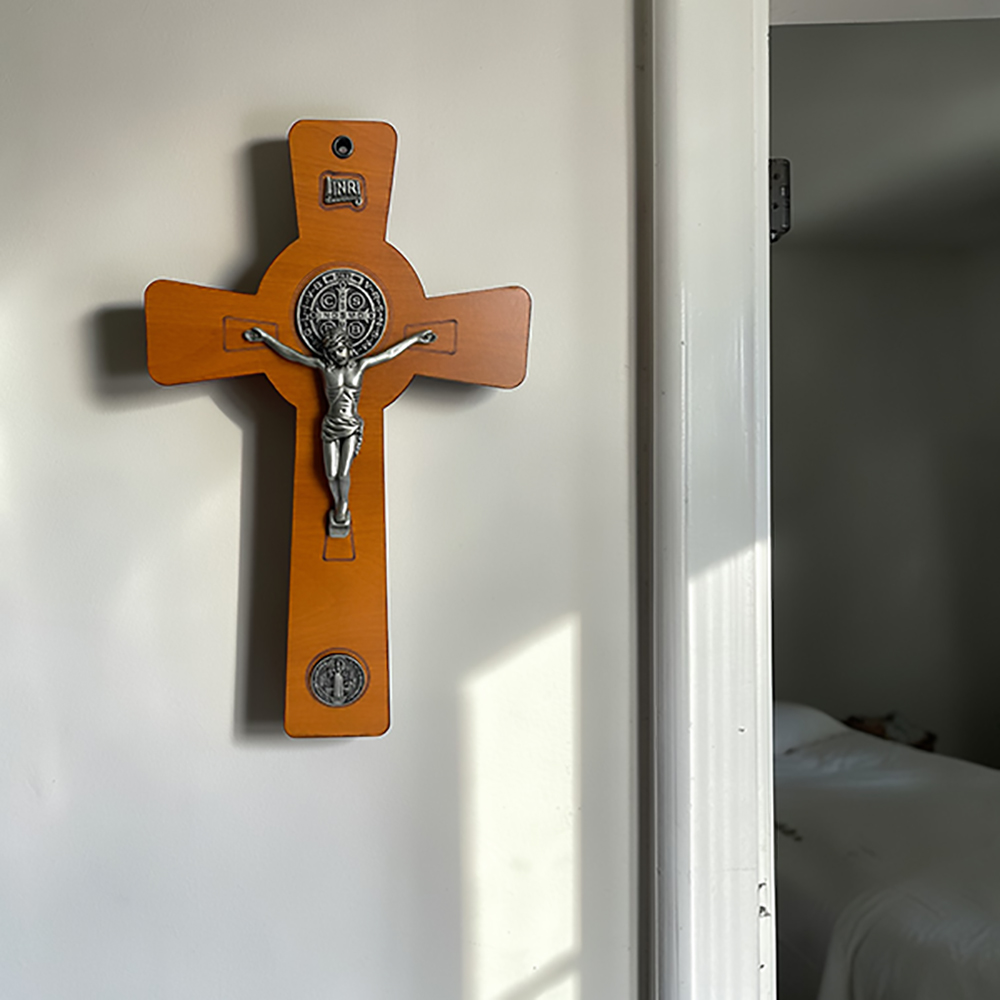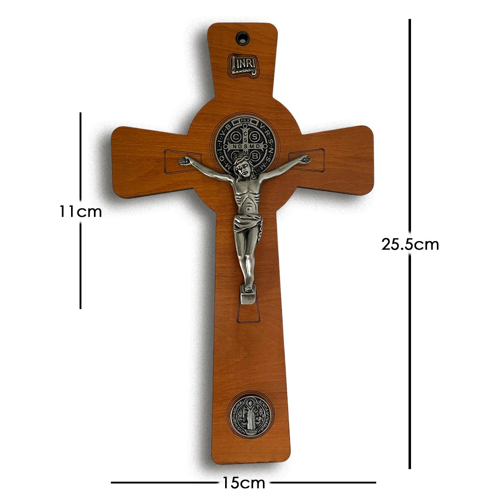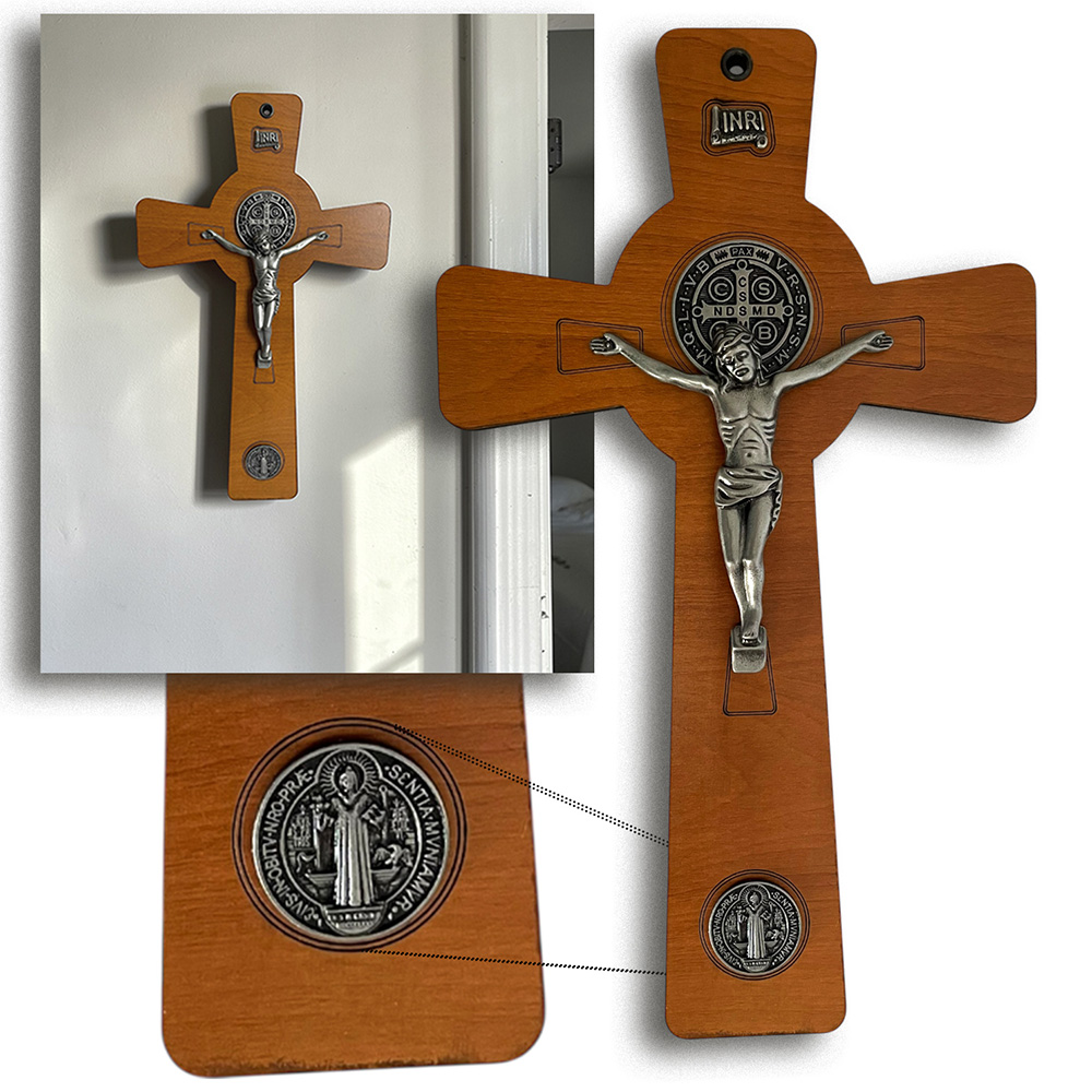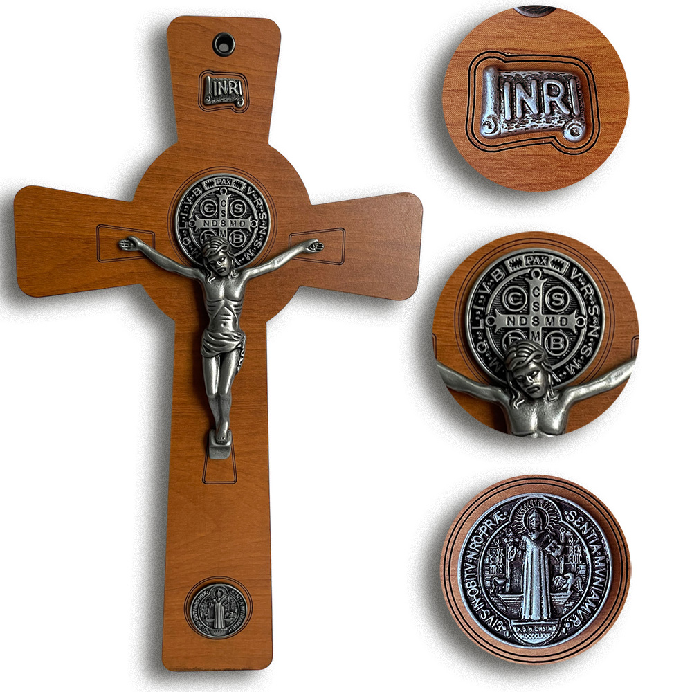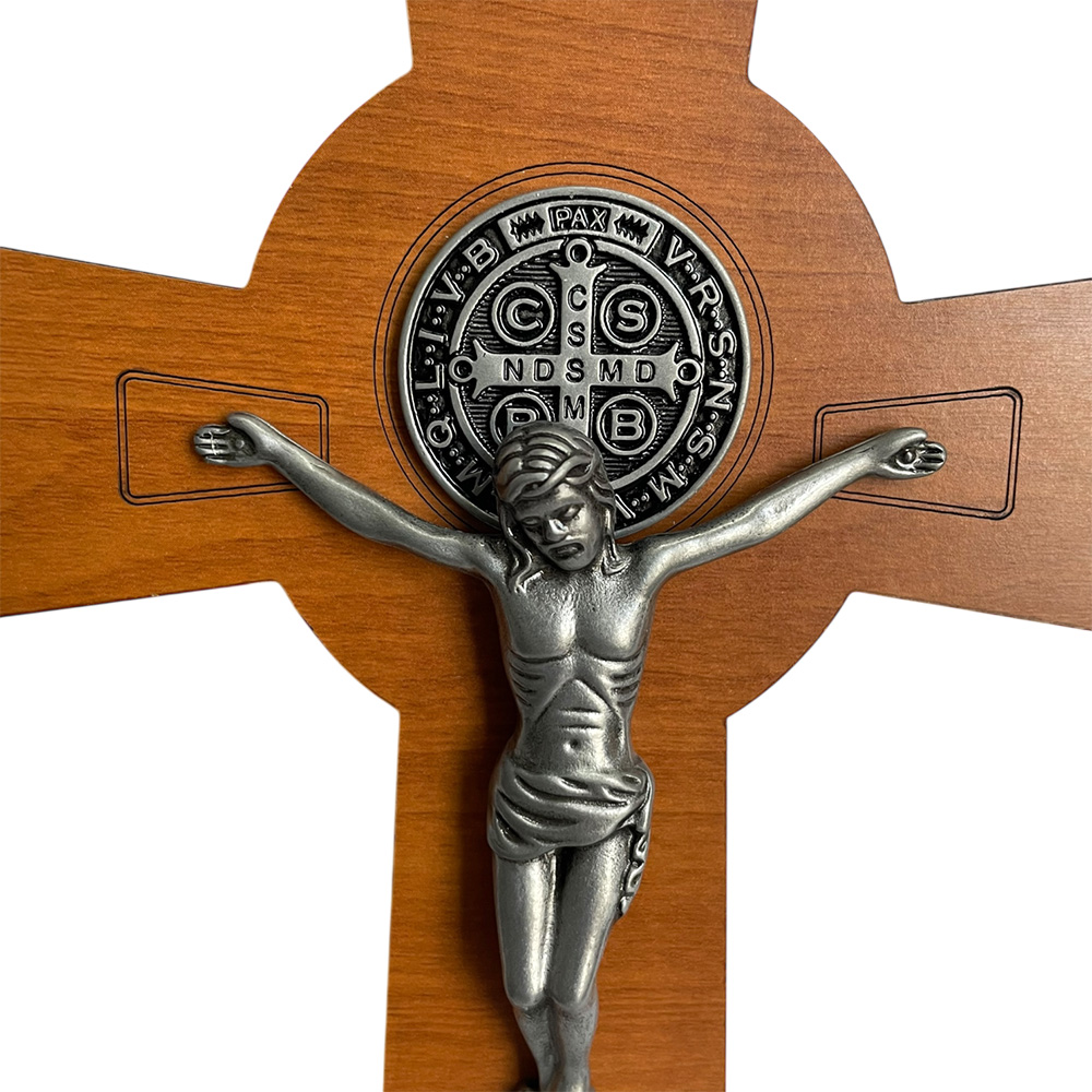 Crucifijo Pared 15x25cmH c/Jesús Metal y Medalla Sn Benito - Gris Antique Crucifijo Pared 15x25cmH c/Jesús Metal y Medalla Sn Benito - Gris Antique