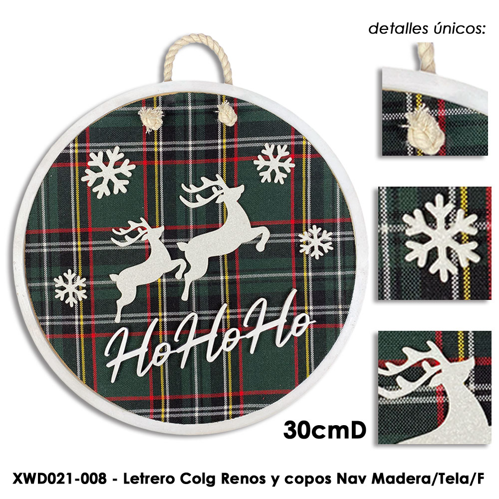 Letrero Colg Renos y copos Nav Madera/Tela/F - 30cmD Letrero Colg Renos y copos Nav Madera/Tela/F - 30cmD