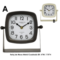 230-37867AReloj de Mesa Metal Cuadrado BK - 8"W, 7.75"H
