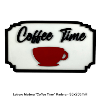 Letrero COFFEE 5 ganchos mad/mtl - 24"W 9"H