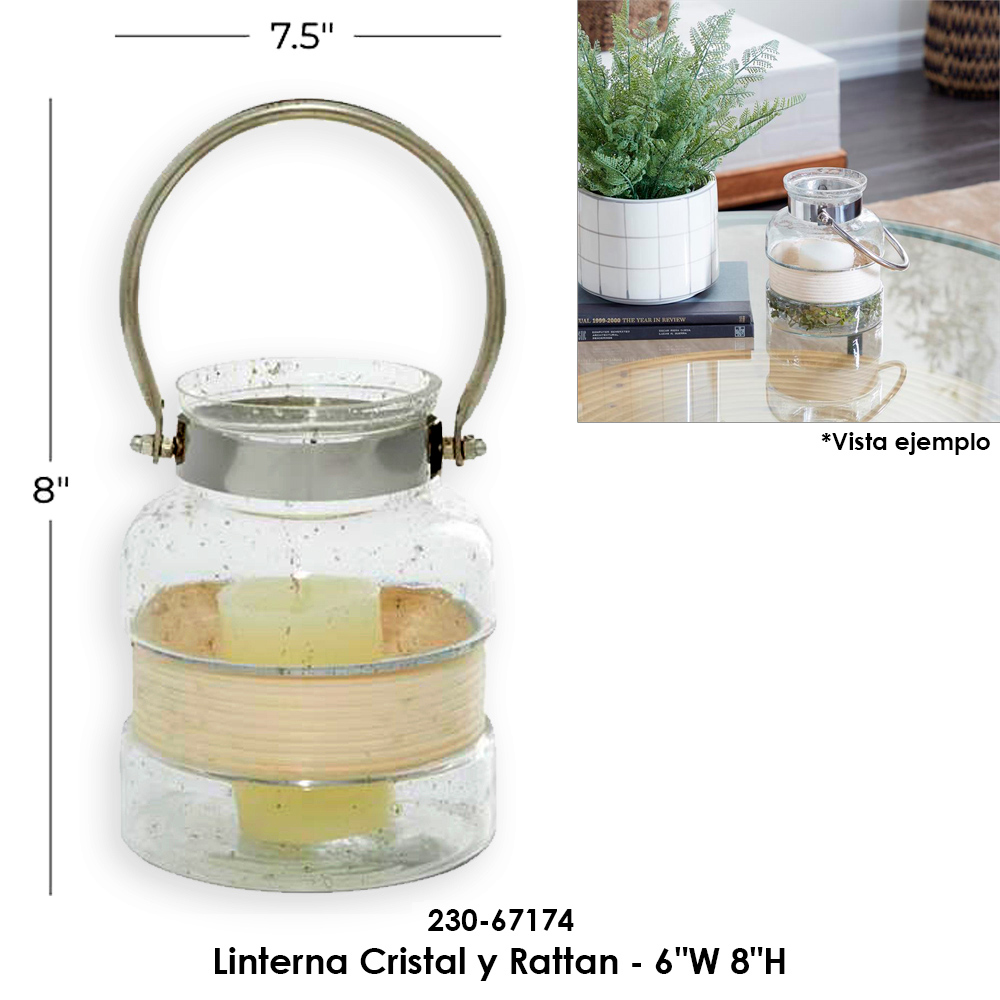 Linterna Cristal y Rattan - 6"W 8"H Linterna Cristal y Rattan - 6"W 8"H