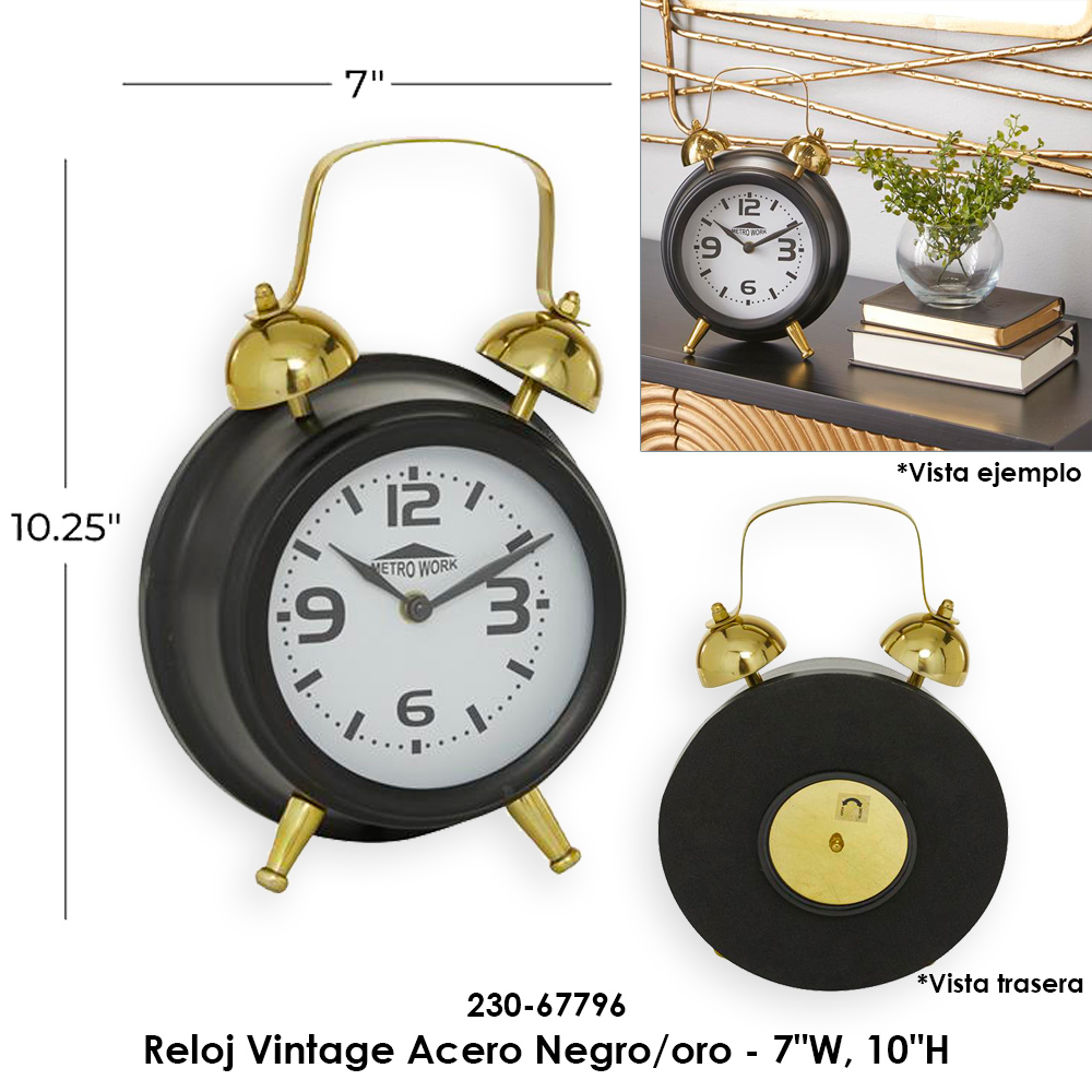 Reloj Vintage Acero Negro/oro - 7"W, 10"H Reloj Vintage Acero Negro/oro - 7"W, 10"H
