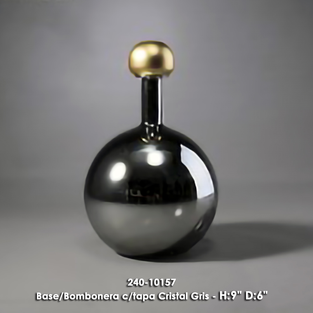Base/Bombonera c/tapa Cristal Gris - H:9" D:6" Base/Bombonera c/tapa Cristal Gris - H:9" D:6"