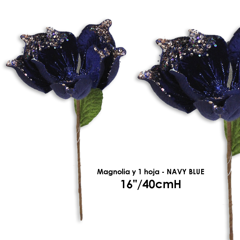 Magnolia y 1 hoja - 16"/40cmH - NAVY BLUE Magnolia y 1 hoja - 16"/40cmH - NAVY BLUE