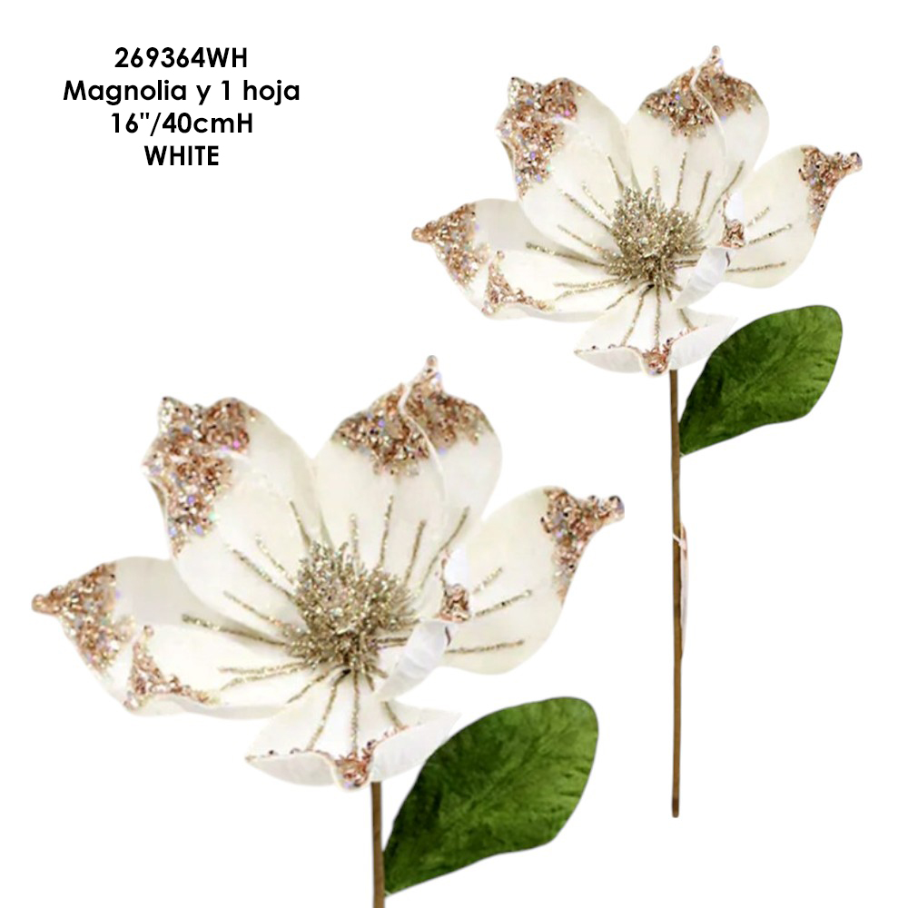 Magnolia y 1 hoja - 16"/40cmH - WHITE Magnolia y 1 hoja - 16"/40cmH - WHITE