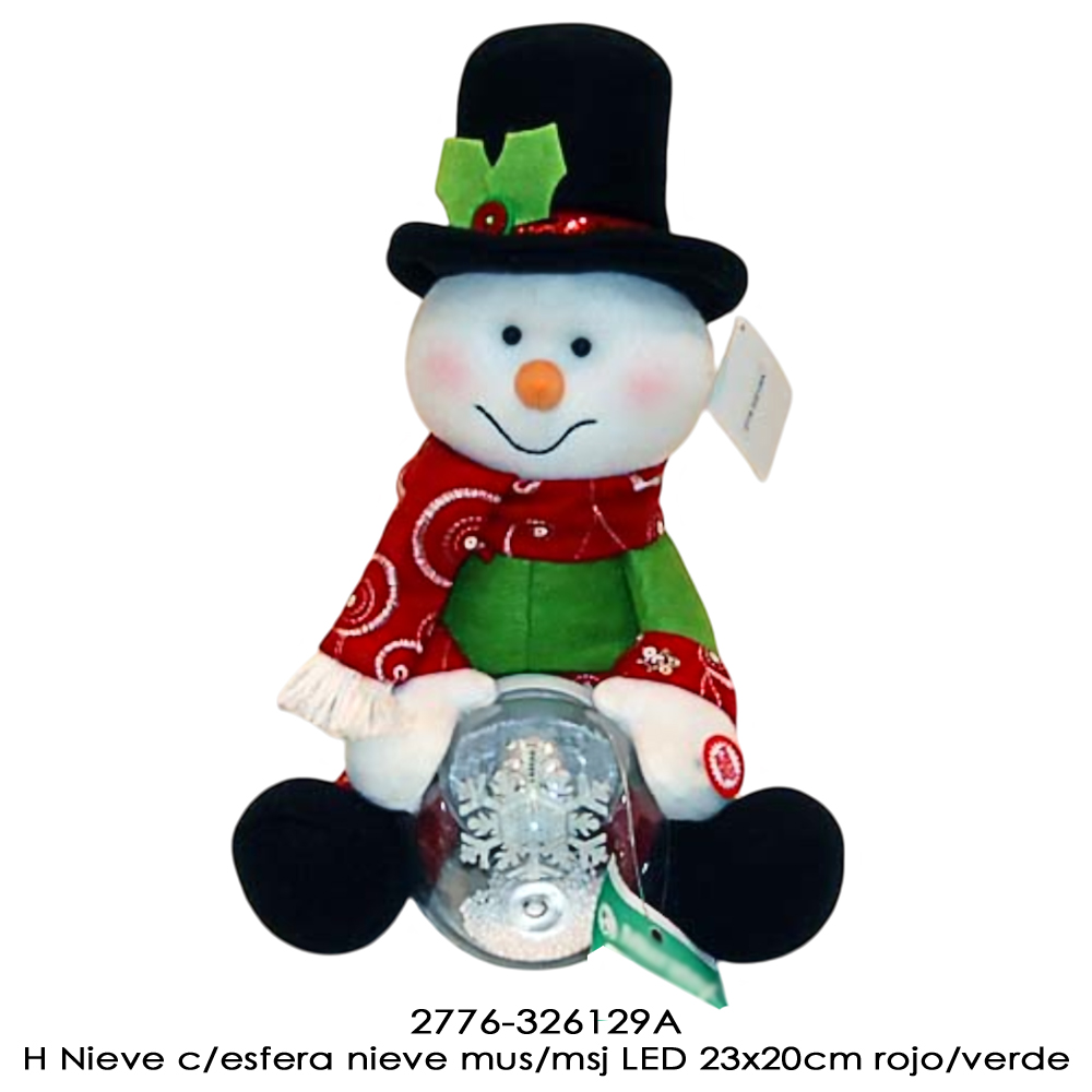 H Nieve c/esfera nieve mus/msj LED 23x20cm - RED/GREEN H Nieve c/esfera nieve mus/msj LED 23x20cm - RED/GREEN