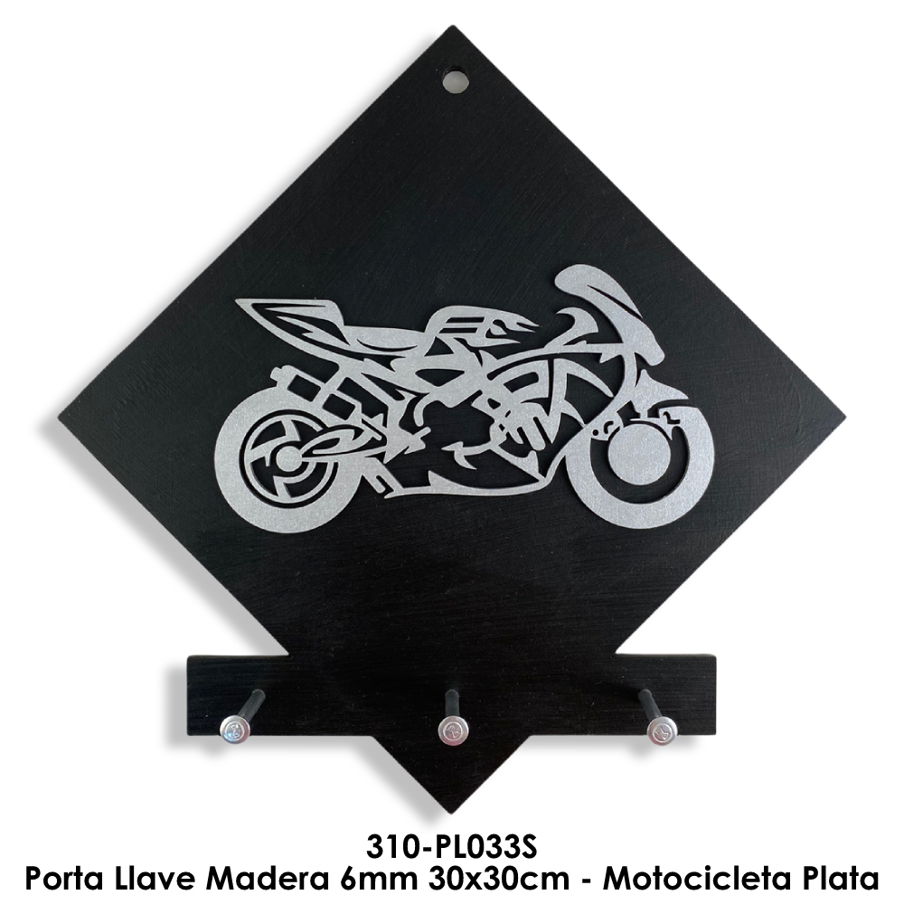 Porta Llave Madera 6mm 30x30cm - Motocicleta Plata Porta Llave Madera 6mm 30x30cm - Motocicleta Plata