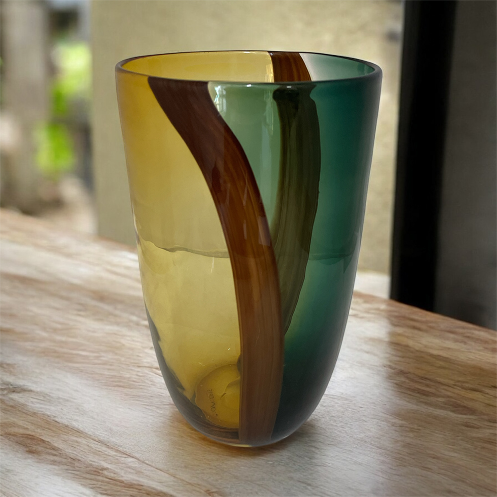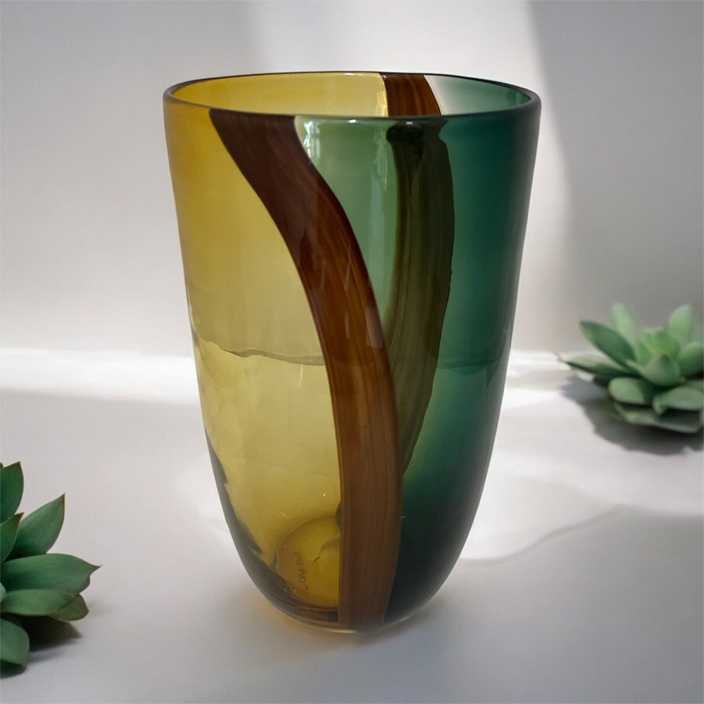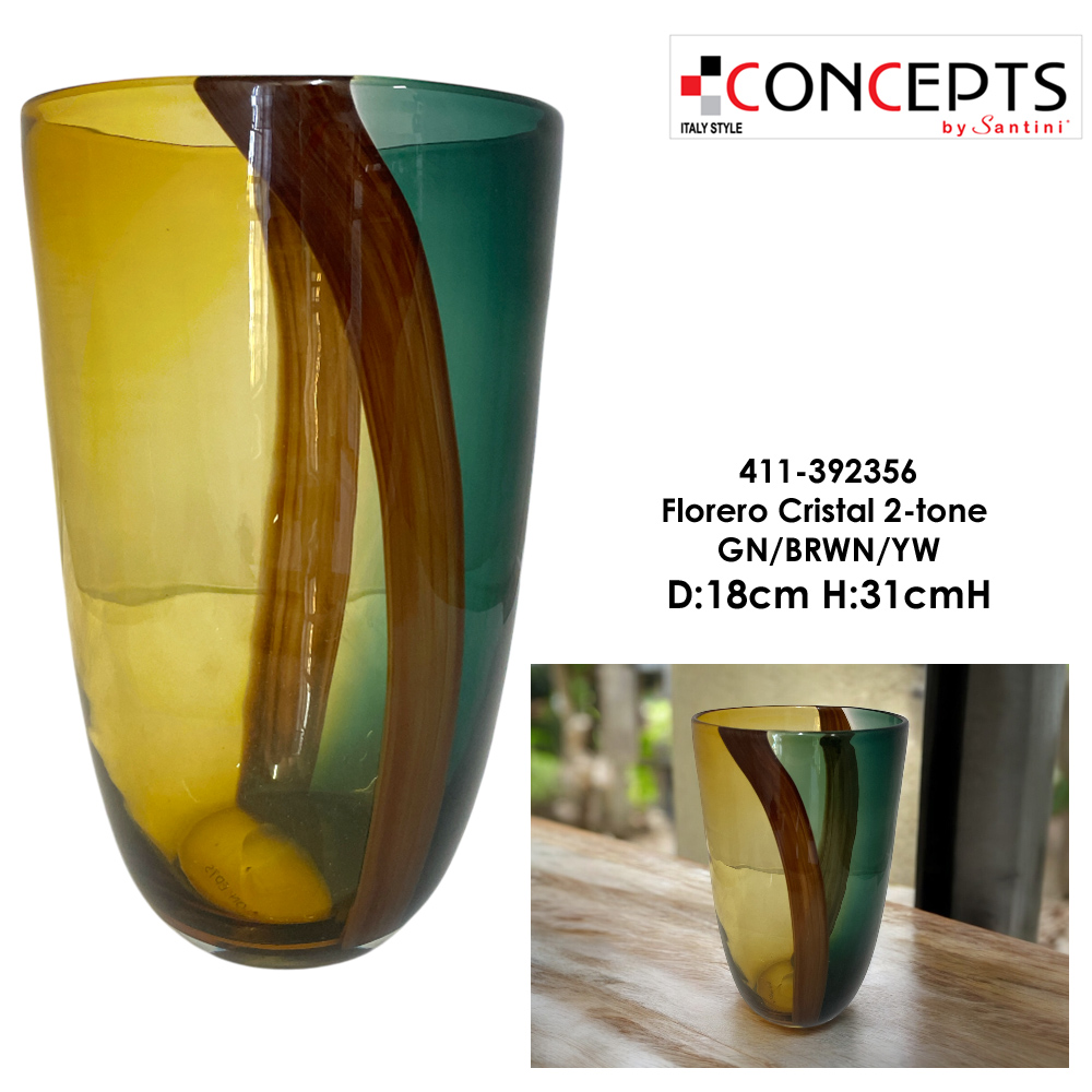 Florero Cristal 2-tone GN/BRWN/YW - D:18cm H:31cmH Florero Cristal 2-tone GN/BRWN/YW - D:18cm H:31cmH