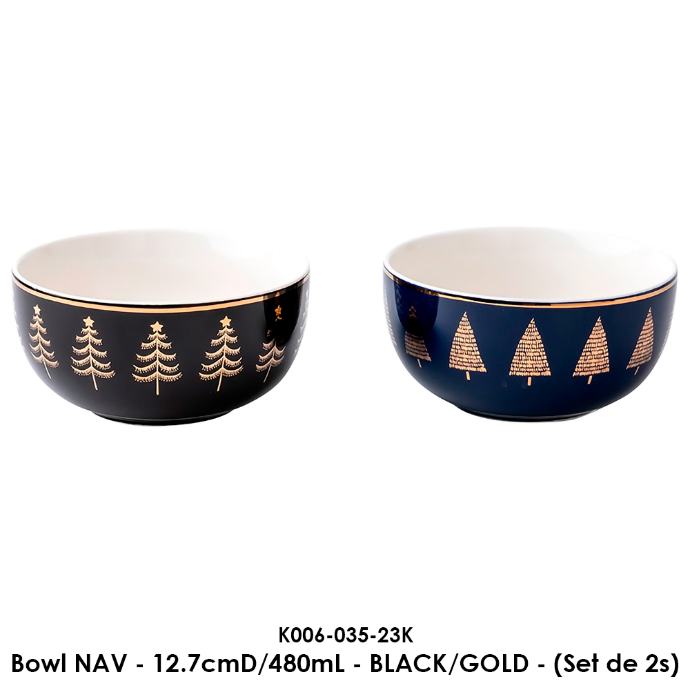Bowl NAV - 12.7cmD/480mL - BLACK/GOLD - (Set de 2s) Bowl NAV - 12.7cmD/480mL - BLACK/GOLD - (Set de 2s)