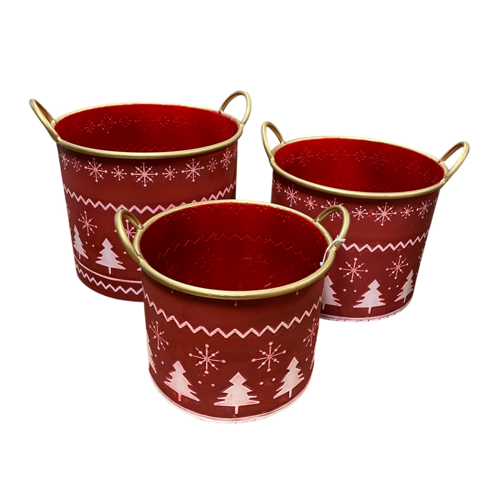 Jgo 3 Macetas Metal c/asas - GOLD/red/WHITE Jgo 3 Macetas Metal c/asas - GOLD/red/WHITE