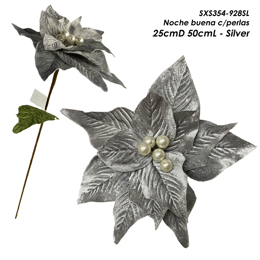 Noche buena c/perlas - 25cmD 50cmL - Silver Noche buena c/perlas - 25cmD 50cmL - Silver