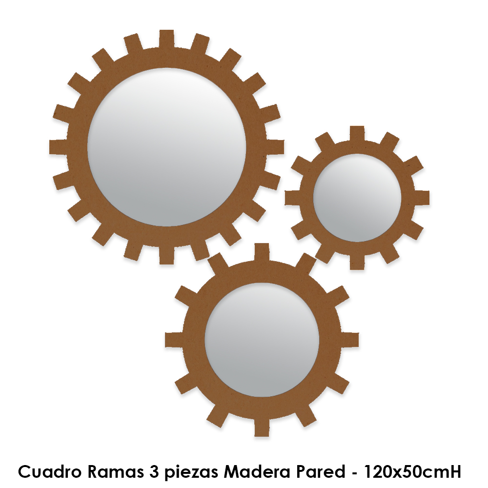 Jgo de 3 Espejos Engranes Madera - 25,32, 42cmD Jgo de 3 Espejos Engranes Madera - 25,32, 42cmD