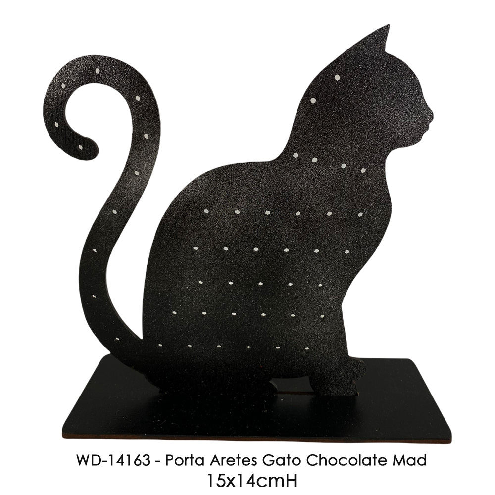 Porta Aretes Gato Chocolate Madera - 15x14cmH Porta Aretes Gato Chocolate Madera - 15x14cmH