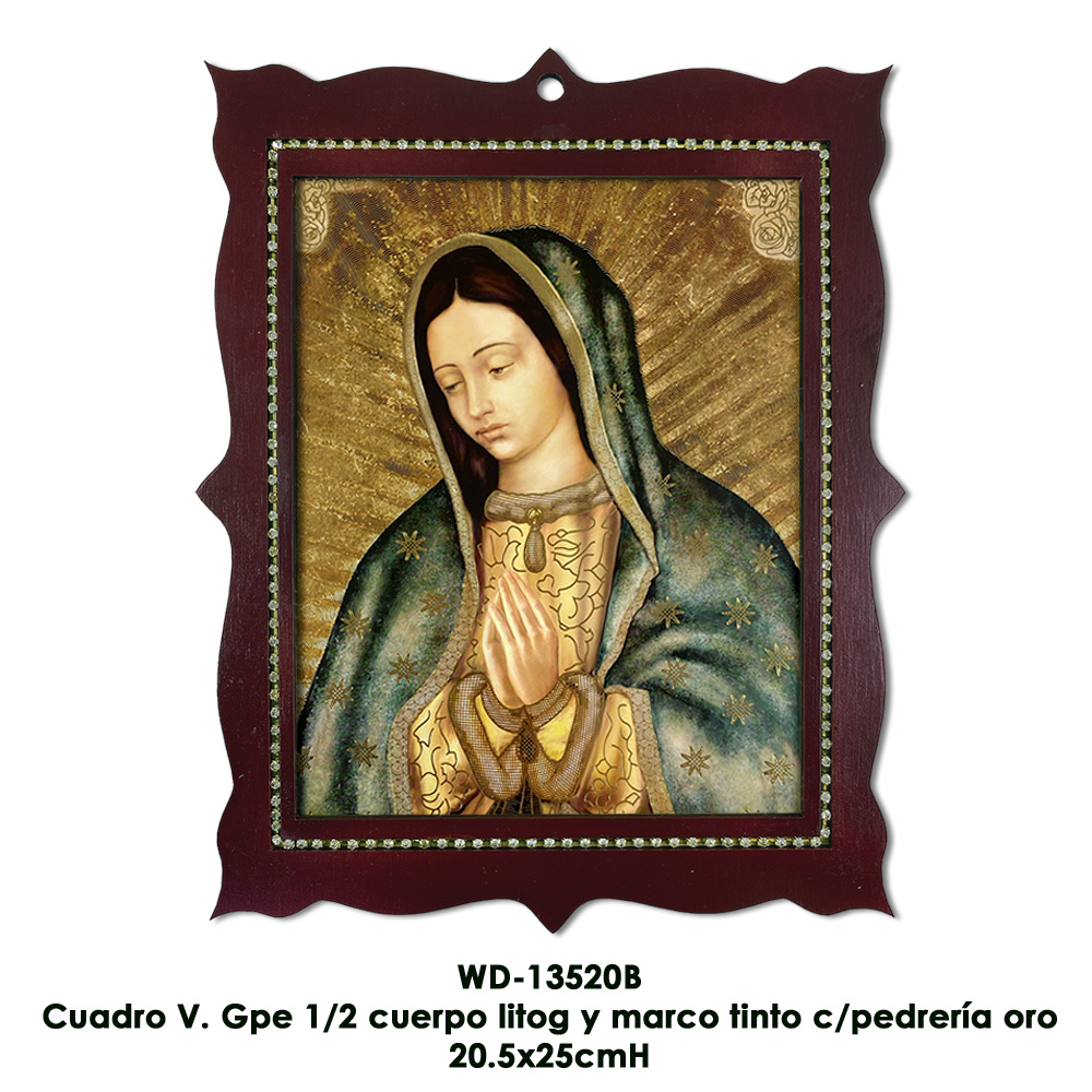 Cuadro V. Gpe 1/2 cuerpo litog y marco tinto c/pedreria oro - 20.5x25cmH Cuadro V. Gpe 1/2 cuerpo litog y marco tinto c/pedreria oro - 20.5x25cmH