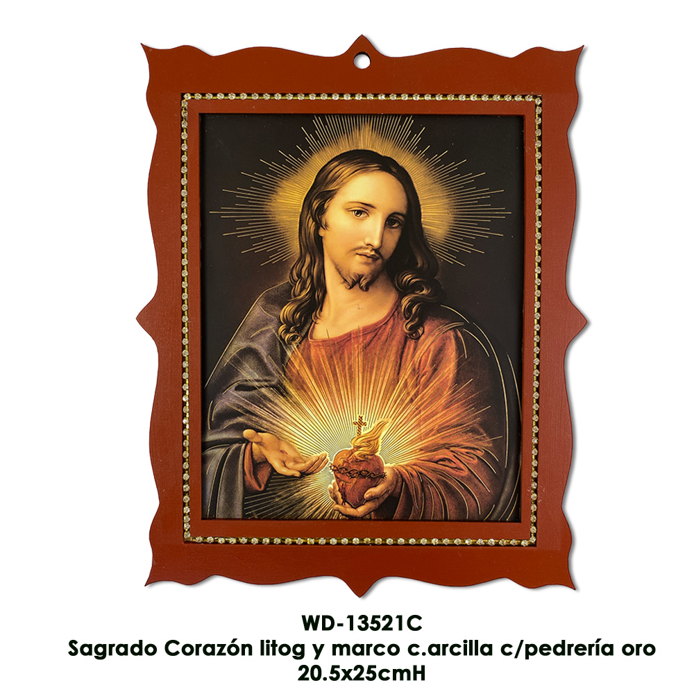 Cuadro Sagrado Corazón litog y marco arcilla c/pedreria oro - 20.5x25cmH Cuadro Sagrado Corazón litog y marco arcilla c/pedreria oro - 20.5x25cmH