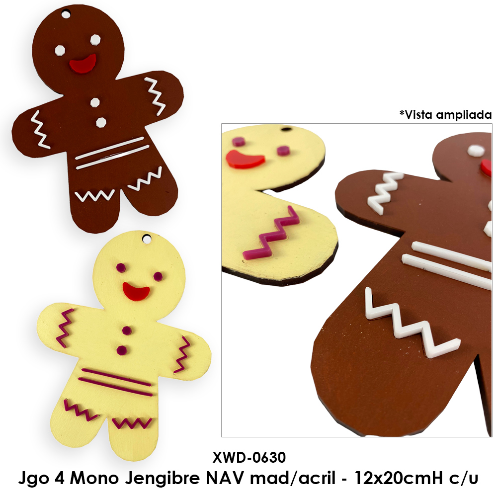 Jgo 4 Mono Jengibre NAV mad/acril - 12x20cmH c/u Jgo 4 Mono Jengibre NAV mad/acril - 12x20cmH c/u