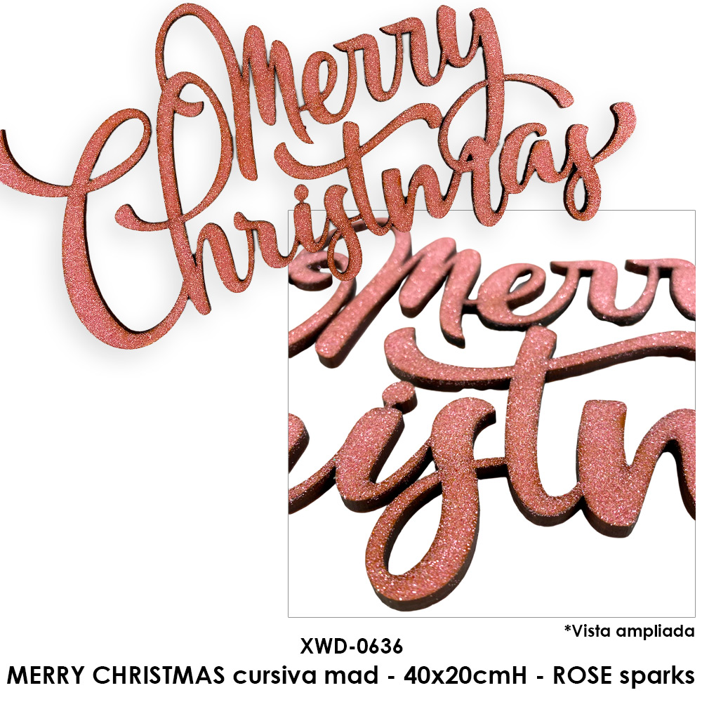 MERRY CHRISTMAS cursiva mad - 40x20cmH - ROSE sparks MERRY CHRISTMAS cursiva mad - 40x20cmH - ROSE sparks