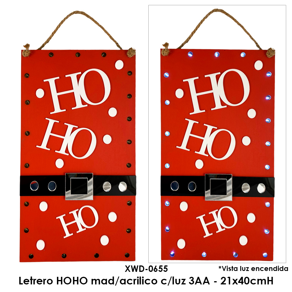 Letrero HOHO mad/acrilico c/luz 3AA - 21x40cmH Letrero HOHO mad/acrilico c/luz 3AA - 21x40cmH