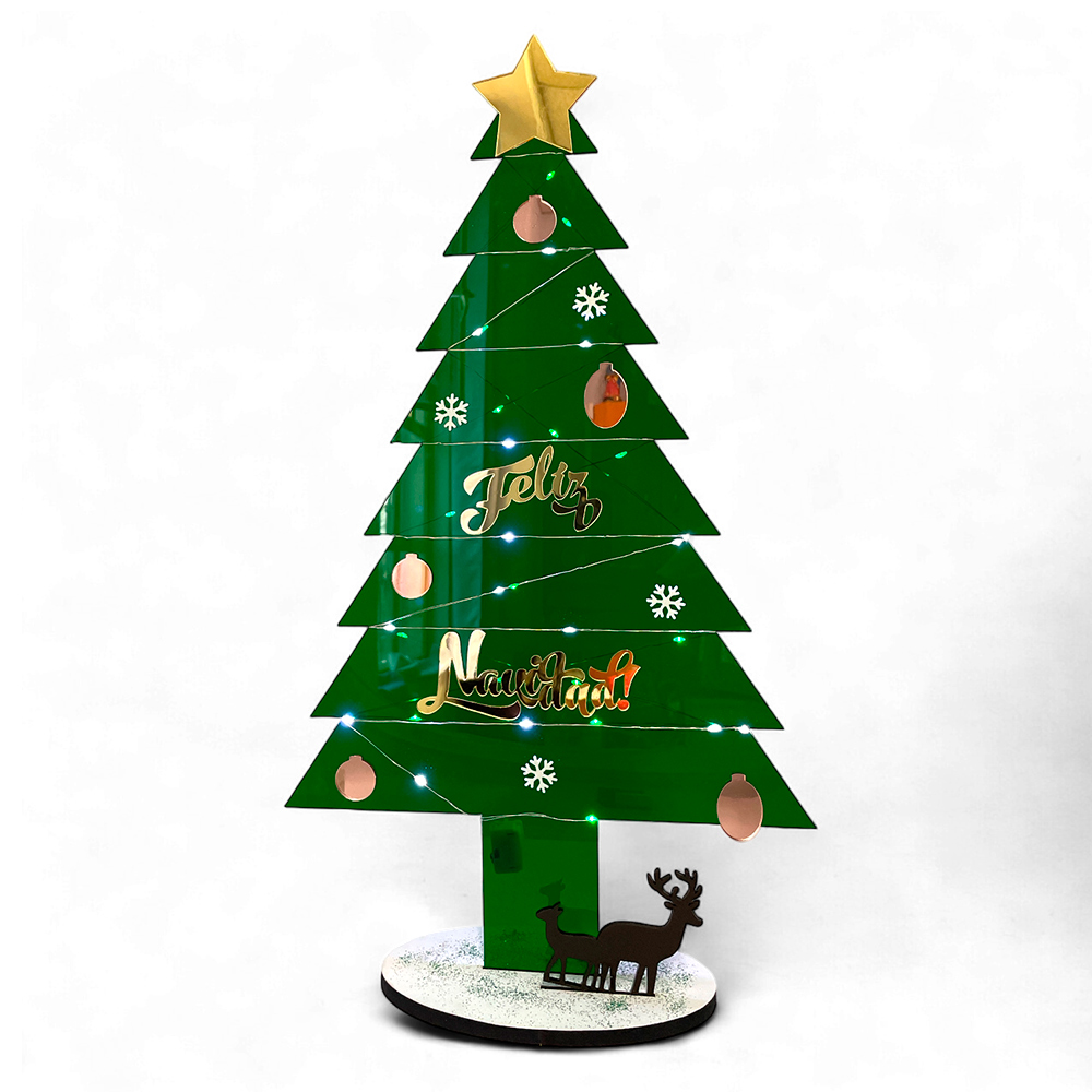 Arbol NAV c/base y venados Acrilico Verde Luz LED - 30x51cmH Arbol NAV c/base y venados Acrilico Verde Luz LED - 30x51cmH