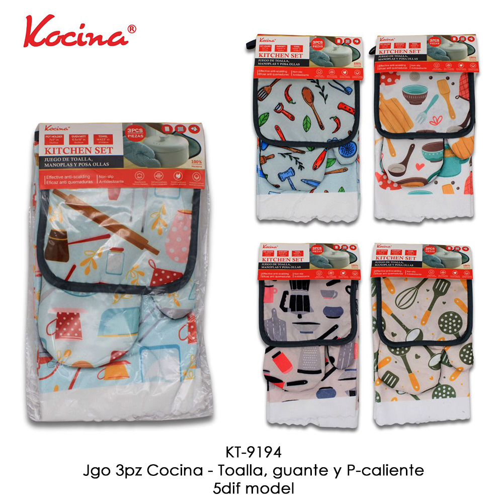 Jgo 3pz Cocina - Toalla, guante y P-caliente Jgo 3pz Cocina - Toalla, guante y P-caliente